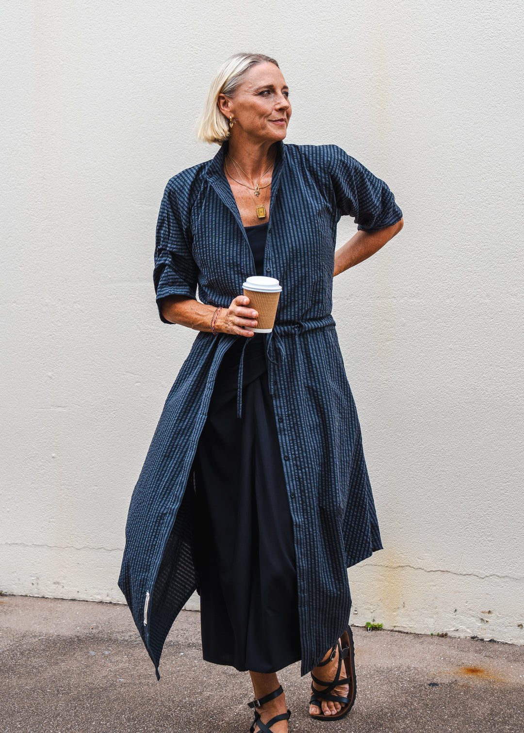 The Sunni Shirt Dress: Blue / White Squares - Silk / Viscose